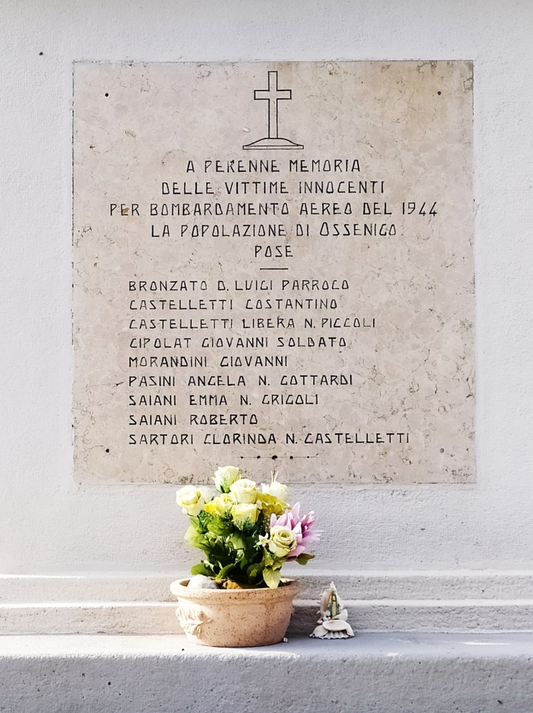 In Valdadige, nel Comune di Dolcรจ, Novembre รจ un mese molto sentito perchรจ, nel ‘terribile novembre 1944’ (G. Policante) tutti i paesi e le frazioni subirono, in diversi modi, stragi in nome della guerra, operate in modo diverso ma con un unico minimo denominatore: i morti civili, morti solo perchรจ nati in una Valle strategica per la ritirata verso Nord dell’ormai nemico tedesco. La signora Ernesta Saiani, sopravvissuta al terribile bombardamento di Ossenigo del 06 novembre 1944, coaudiuvata dal figlio Adriano che si รจ preso per anni cura personalmente del Monumento alle vittime nei campi, ci ha raccontato la sua straziante storia: di come in poche ore, forse meno, Ossenigo divenne un paese fantasma.